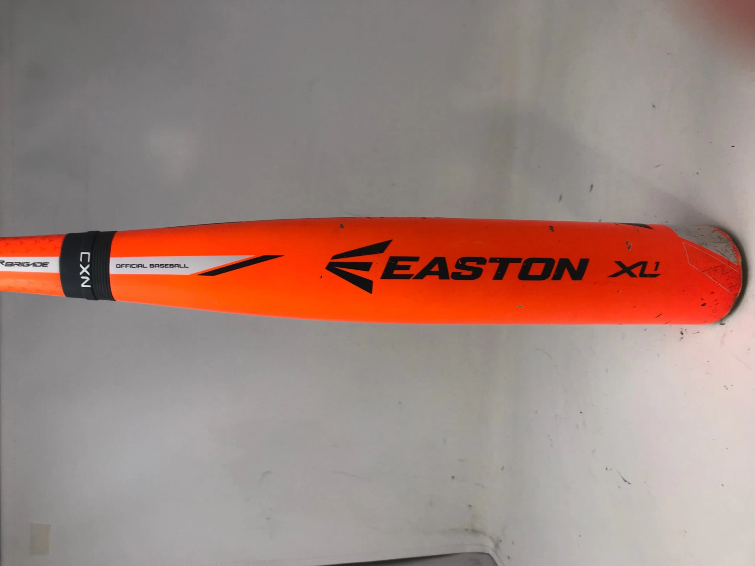 Used Easton 2015 XL1 senior league baseball bat. Its a full composite, 2 piece bat. It has Normal wear. See the photos, it has a some cleat marks worn end cap. – has a 2 5/8″ barrel, and is an amazing find. no cracks, dents or rattles.